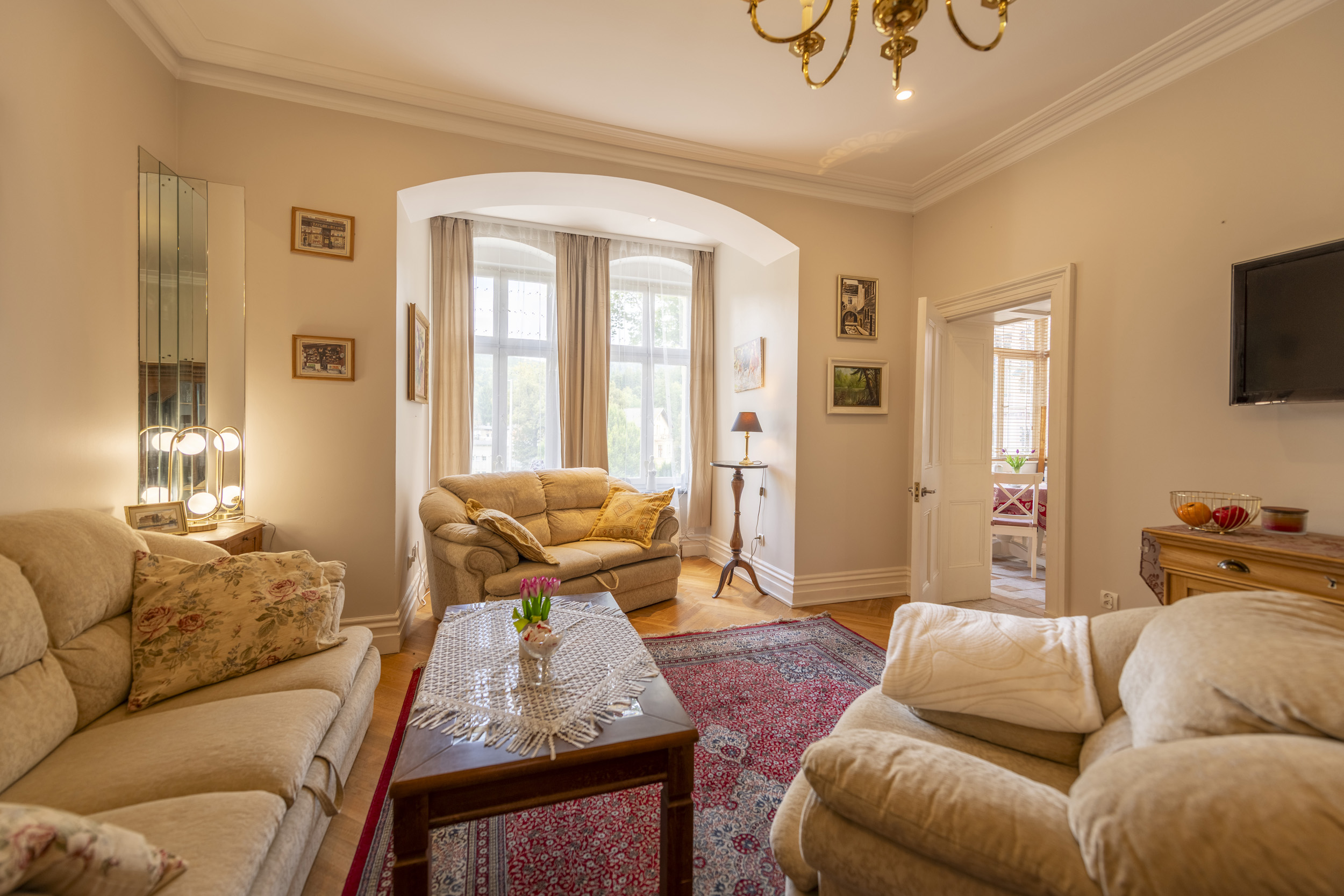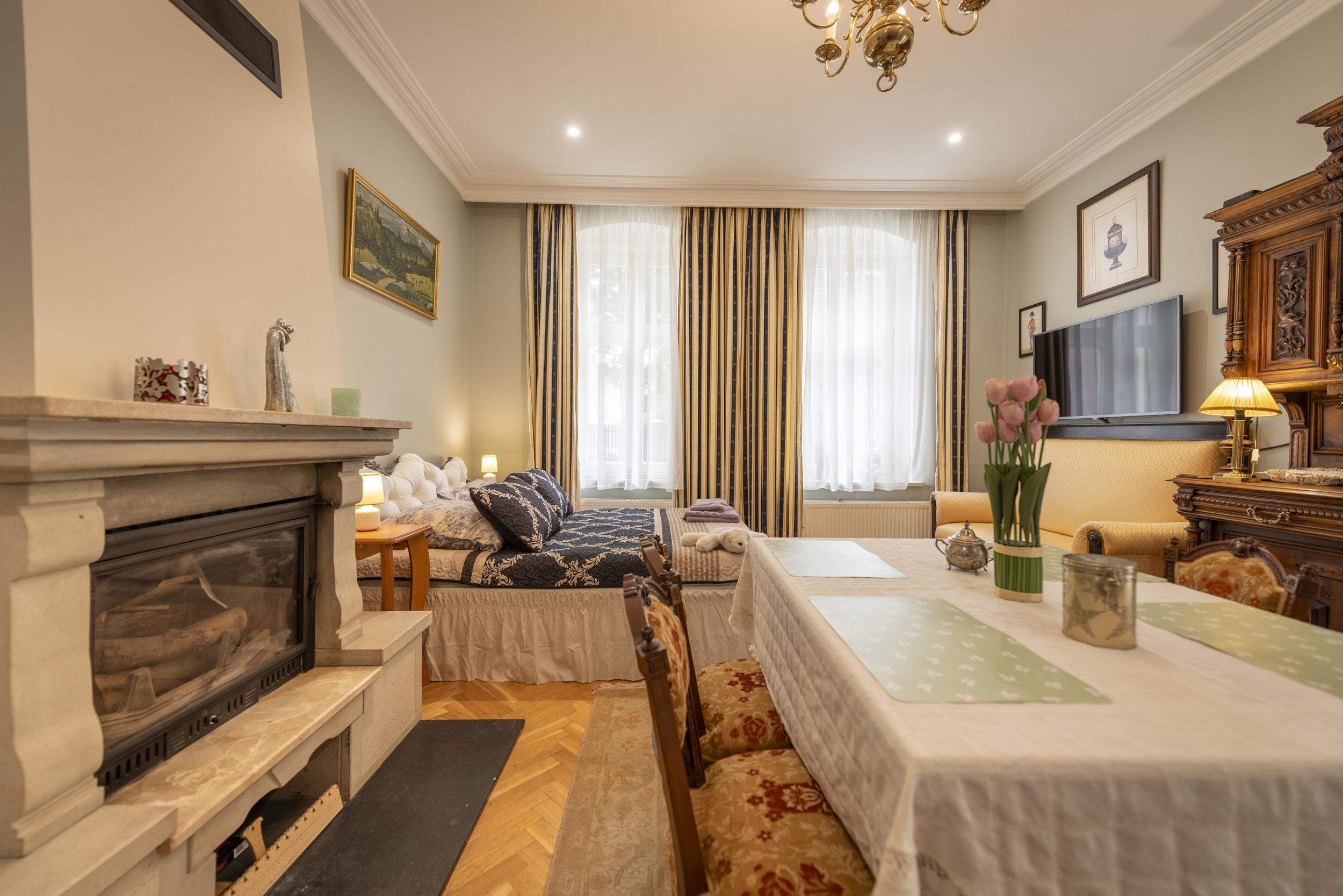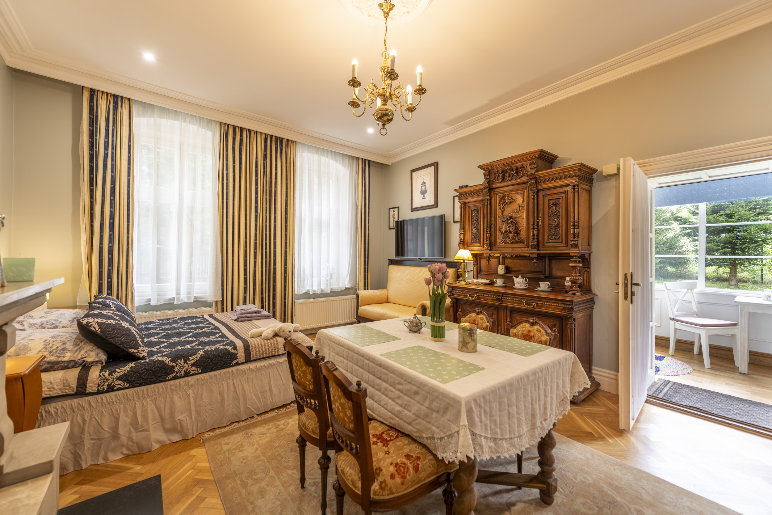 Nasza willa pochodzi z 1903 roku i była przez wiele lat pieczołowicie odrestaurowywana, a teraz jest gotowa, abyś mógł się nią cieszyć. Dom znajduje się w jednej z piękniejszych lokalizacji w Lądku Zdroju, w strefie uzdrowiskowej A, przy Placu Partyzantów, u podnóża góry Dzielec, z widokiem na górę Trojak. Tutaj panuje Cisza, spokój i piękne widoki. Oddajemy do dyspozycji 4 stylowe, komfortowe apartamenty o powierzchni 45, 65, 97 i 105 m2, każdy z oddzielnym wejściem. Piękne parkiety, stare meble, kamień w łazienkach oraz cudowna drewniana weranda z tyłu domu to coś, co wyróżnia naszą ofertę. Dla naszych Gości jest ogród z altaną, grillem, zamknięty parking oraz pomieszczenie na rowery i narty. Każdy apartament ma łazienkę, kuchnię oraz dużą część dzienną, w każdym dostępna jest pralka, deska i żelazko do prasowania. Dla gości przygotowaliśmy książki, gry planszowe. Na parterze można połączyć 2 apartamenty, np dla dwóch rodzin wspólnie podróżujących. Można wynająć również cały dom. Dla klientów jest bezpłatne wifi starlink, programy telewizyjne satelitarne, parking bezpłatny przed domem. Przyjmujemy zwierzęta po uzgodnieniu.